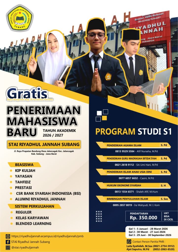 Selamat datang di STAI Riyadhul Jannah Subang, tempat kita dapat mulai membuat perubahan nyata dan maju bersama, dengan dedikasi yang tinggi untuk Agama, bangsa dan Negara